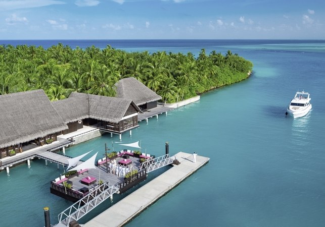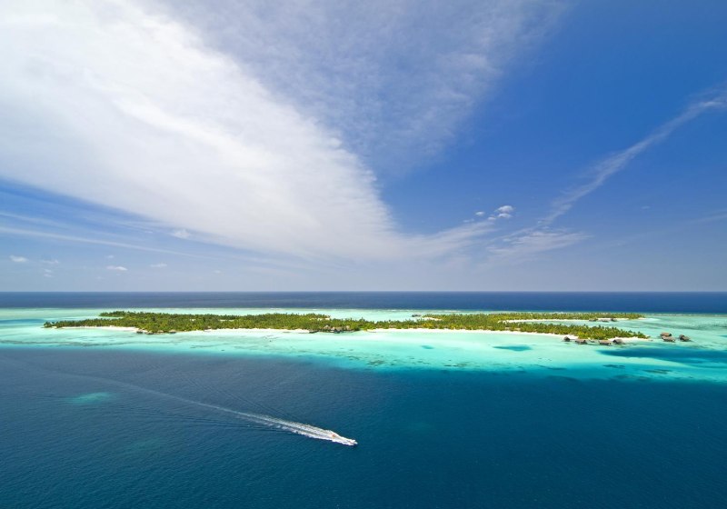 Die Insel liegt im Nord-Malé-Atoll der Malediven und ist per Schnellboot oder Yacht in etwa 45 Minuten vom Flughafen Malé erreichbar. Das Umfeld ist maritim und ruhig, ohne Autoverkehr. Der Strand ist unmittelbar, mit Liegestühlen, Sonnenschirmen und Strandbar. Das Hausriff liegt in einer Distanz von etwa 250 bis 300 Metern und bietet sich als naheliegender Orientierungspunkt an. Die Insellage schafft kurze Wege zwischen Strand, Pools, Restaurants und Sportbereichen.