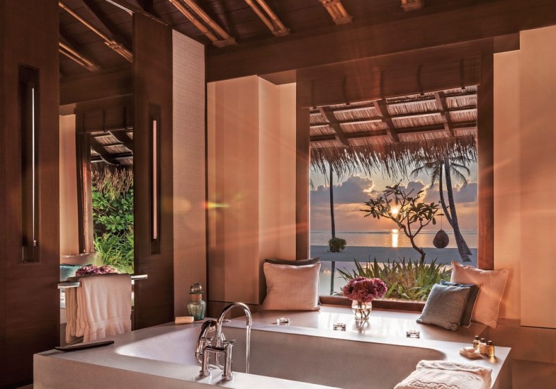 - Beach Villas: Großzügige Bäder mit Terrazzo-Wanne, Regen- und Außendusche.