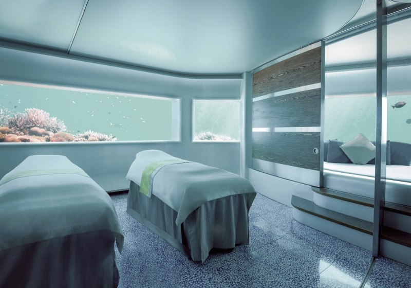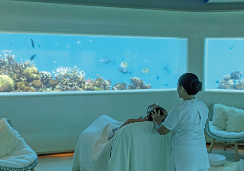 - Spa: Unterwasser-Spa mit Behandlungsszenen vor mariner Kulisse.