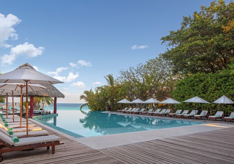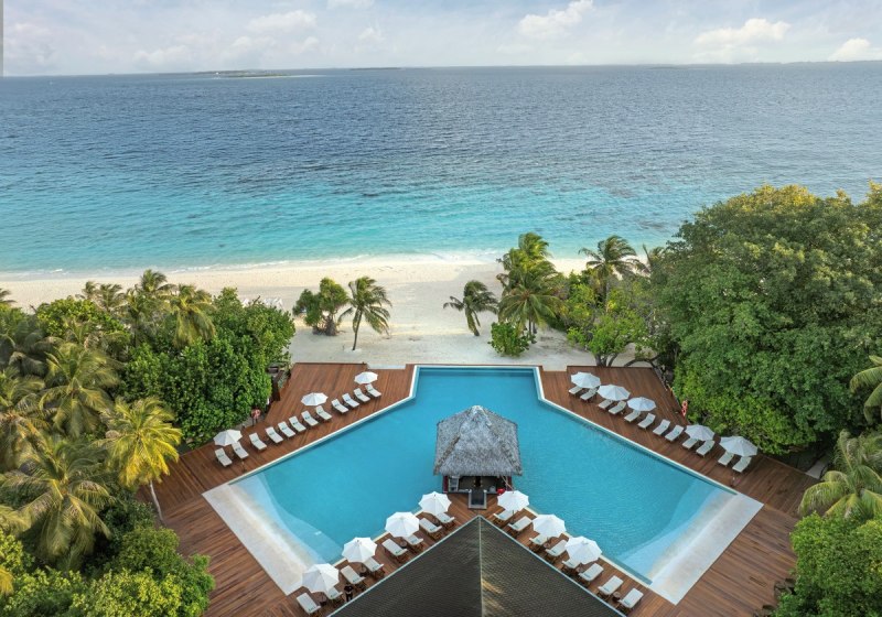 Im Adaaran Select Meedhupparu erlebt Ihr das klassische Inselgefühl des Raa-Atolls: eine grüne Tropenkulisse, Chalets rund um die Insel und ein weitläufiger Sandstrand. Der große Pool mit Terrasse bildet den lebendigen Mittelpunkt, während Ihr am Hausriff innert kurzer Distanz ins klare Wasser gleitet. Familien, Paare und Strandliebhaber finden hier seriöse Ruhe mit gezielten Aktivangeboten.