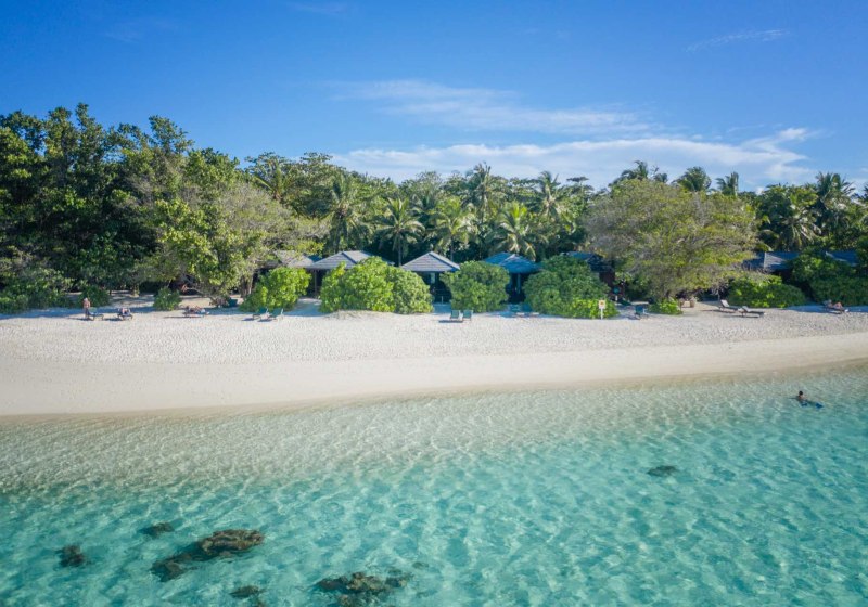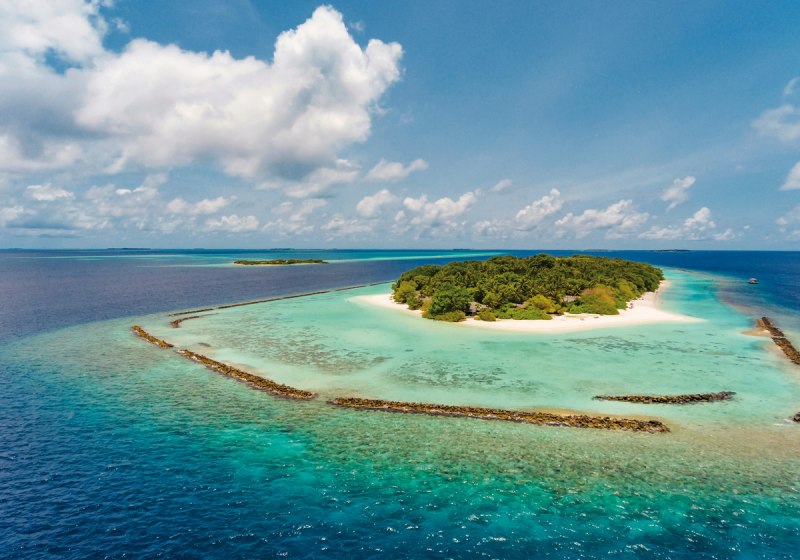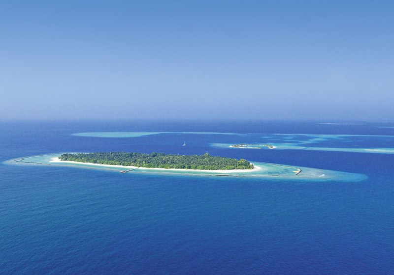 Die Insel Horubadhoo liegt im östlichen Baa-Atoll; die Dimensionen von etwa 800 mal 220 Metern machen Wege angenehm kurz. Das Hausriff beginnt je nach Abschnitt bereits nach rund 30 bis 60 Metern – ein klarer Vorteil für spontane Schnorchelgänge. Highlight: Überschaubare Inselgröße und nahes Riff sorgen für planbare Tage.