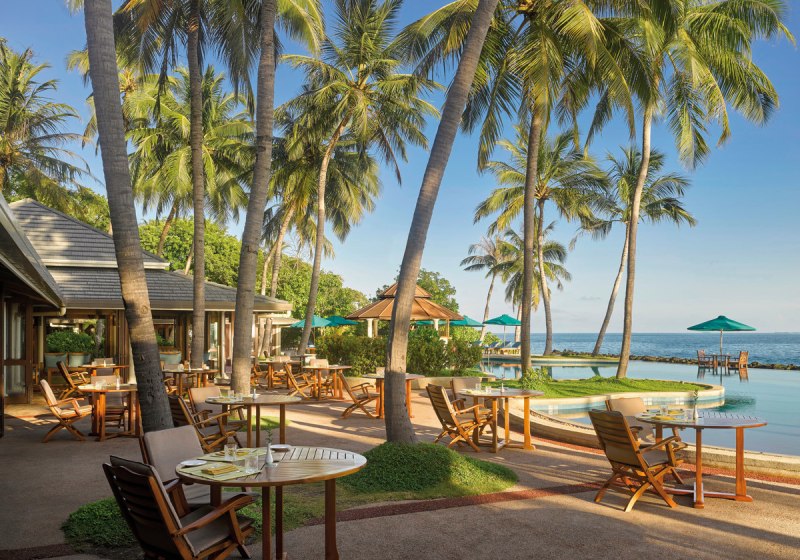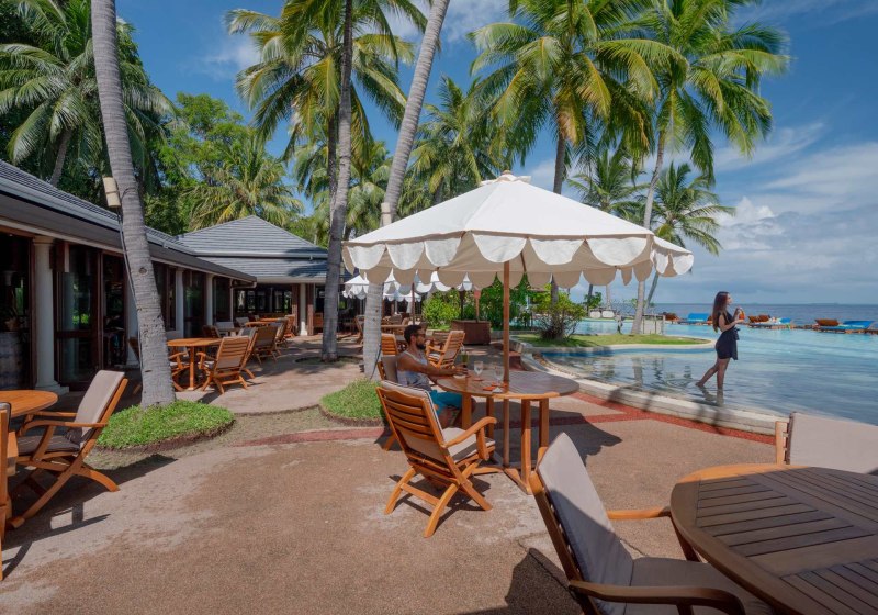 Das Aaramu-Spa setzt auf offene Behandlungsräume, ergänzt um Beauty- und Ayurveda-Center. Massagen, Spa-Anwendungen sowie ein Wellness-Center werden sachlich organisiert, mit klarer Ausrichtung auf Ruhe und Regeneration ohne überladenes Ritual. Highlight: Open-Air-Behandlungen mit viel Luft und Raum.