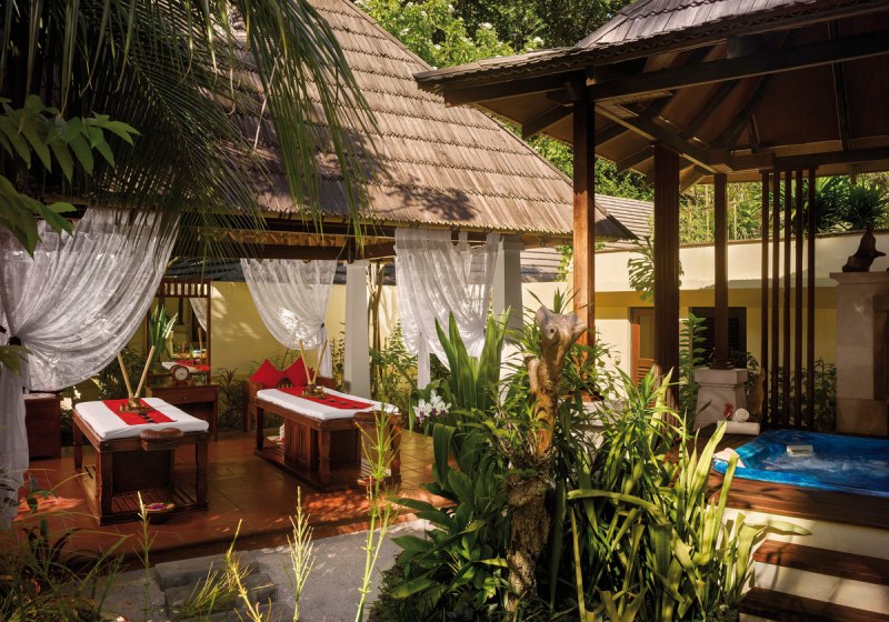 - Spa: Open-Air-Behandlungsräume im Aaramu-Spa mit klarer Struktur.