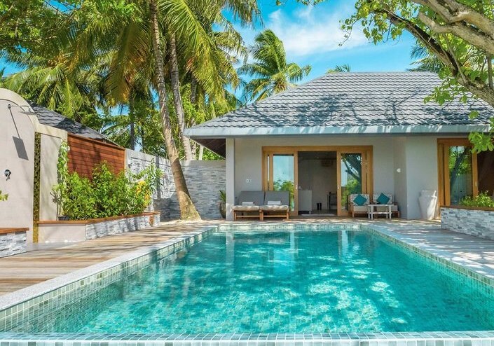 Im Lily Beach Resort & Spa wohnt Ihr in einem stilvollen Villenresort auf der Insel Huvahendhoo im südöstlichen Ari-Atoll. Die Atmosphäre wirkt entspannt und klar strukturiert: kurze Wege, zwei Pools, viel Platz am Strand. Familien finden im Kinderclub und auf dem Outdoor-Spielplatz verlässliche Angebote, Paare schätzen die Rückzugsorte und den ruhigen Rhythmus der Insel.