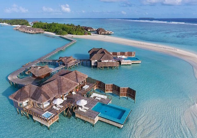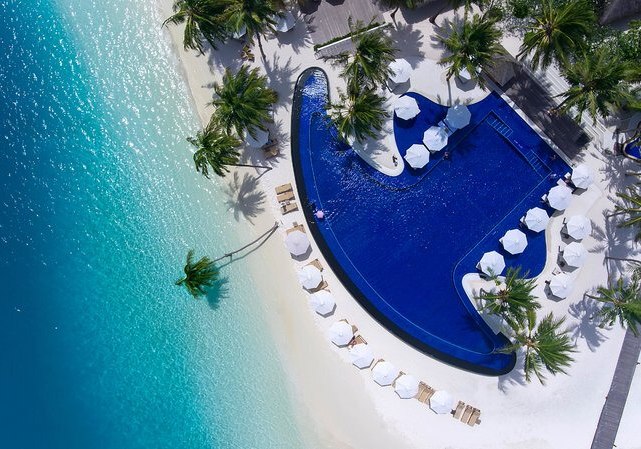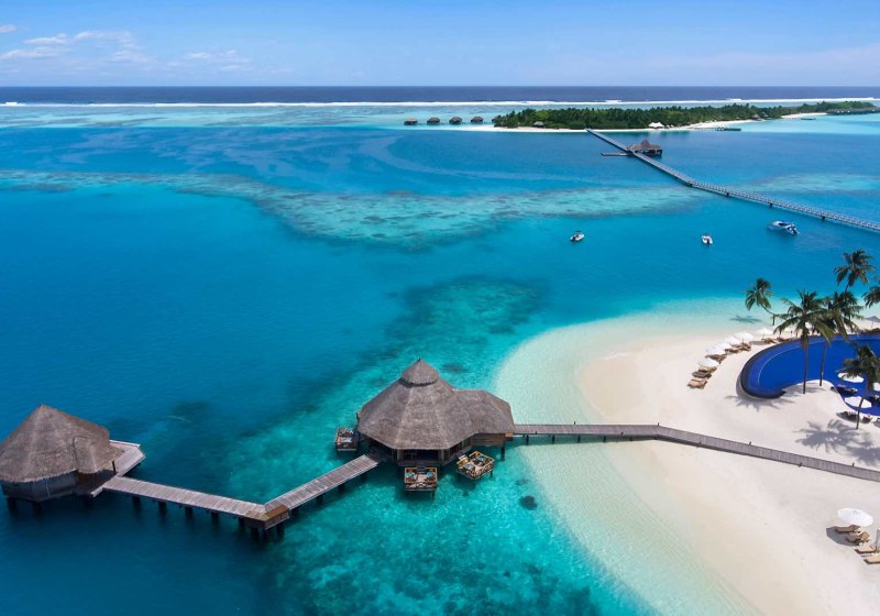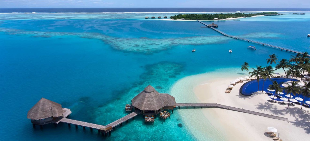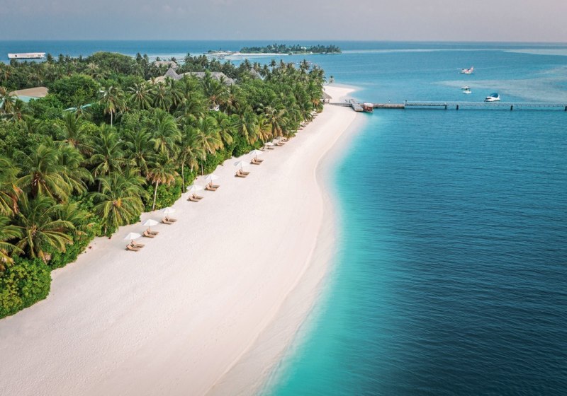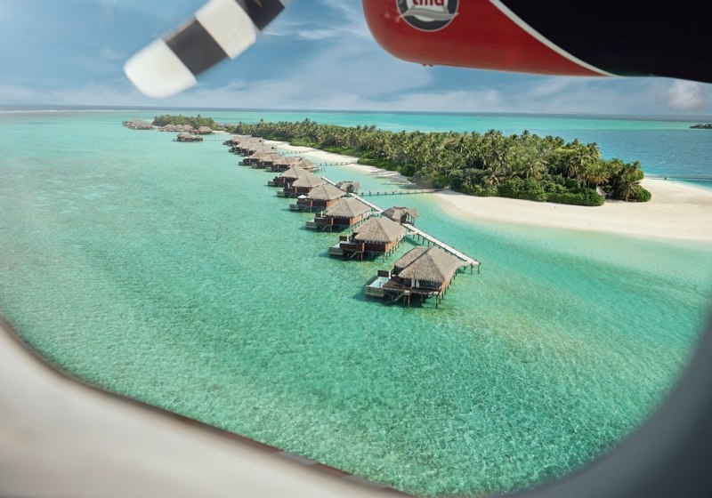 Ihr erreicht das Süd Ari Atoll per Wasserflugzeug in etwa 30 Minuten oder alternativ per Inlandsflug und anschließendem Speedboat-Transfer in rund 50 Minuten. Das Resort spannt sich über zwei Inseln, verbunden durch Stege und Strände, die Euch stets nah ans Wasser führen.