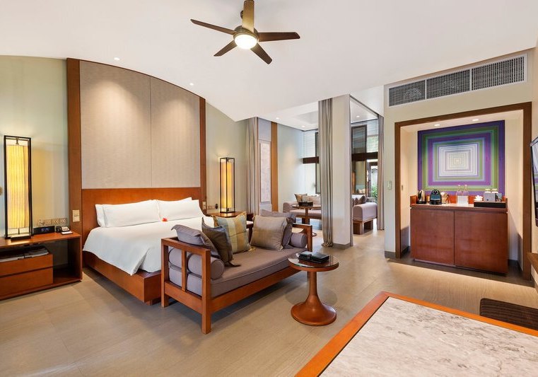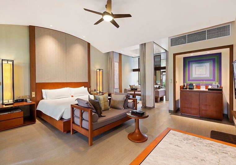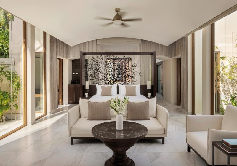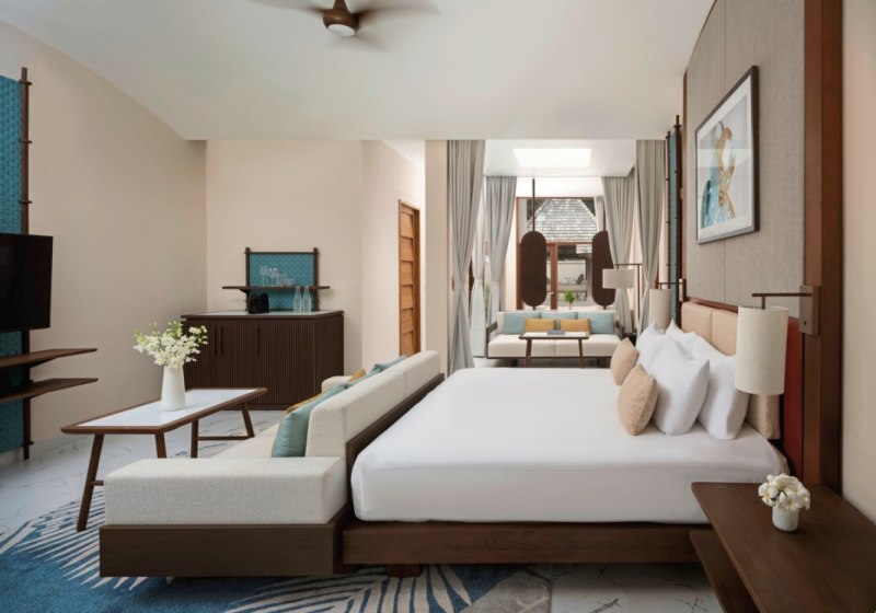 151 Villen und Suiten verteilen sich überwiegend strandnah oder auf Stelzen über dem Indischen Ozean. Zwei Pools – darunter ein Adults-Only-Pool – strukturieren entspannte Tage ebenso wie kurze Wege zu zwölf Restaurants und Bars. Familien finden Clubs für verschiedene Altersstufen, während Paare die Rückzugsorte und den dezenten Service schätzen.