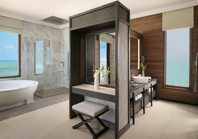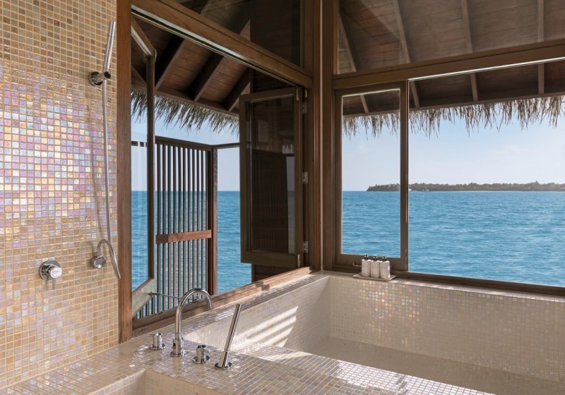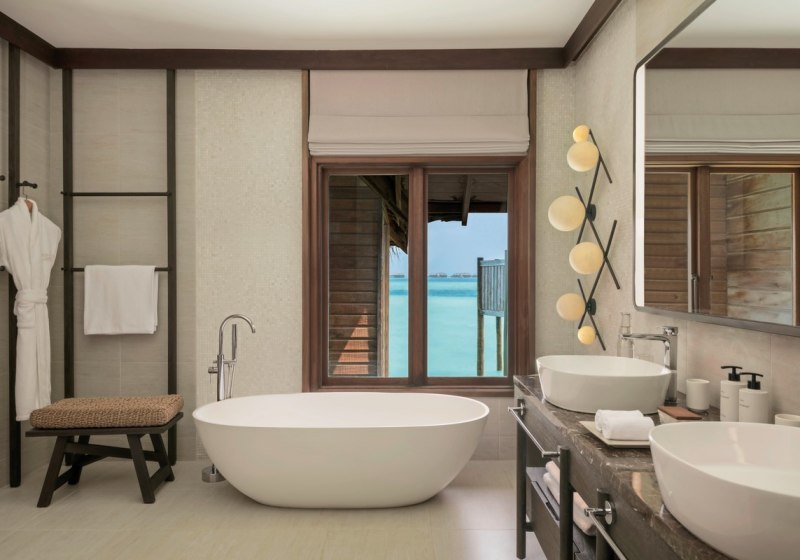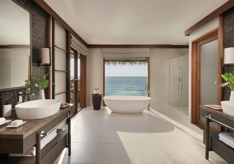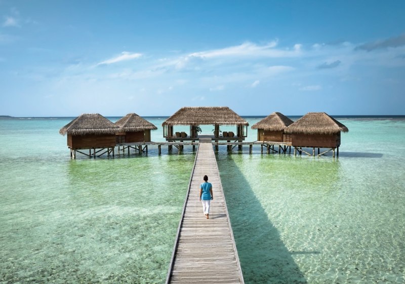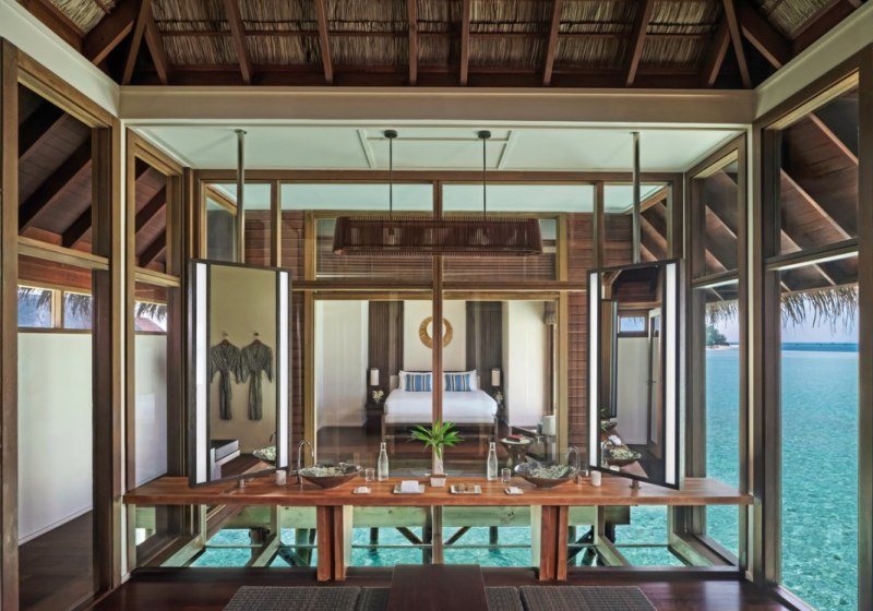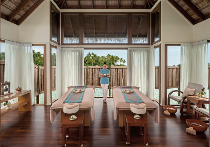 Zwei Spas bilden das Rückgrat Eurer Erholung. Das Overwater Spa steht auf Stelzen über dem Indischen Ozean; Behandlungsräume mit Glasboden öffnen den Blick nach unten, während Anwendungen und Massagen das Programm strukturieren – konzentriert, professionell, klar in der Ausrichtung.