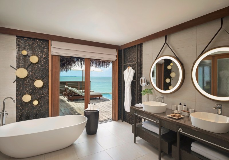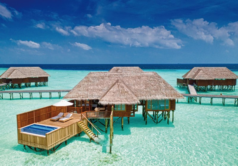 - Overwater Spa: Behandlungsräume mit Glasboden über dem Indischen Ozean.