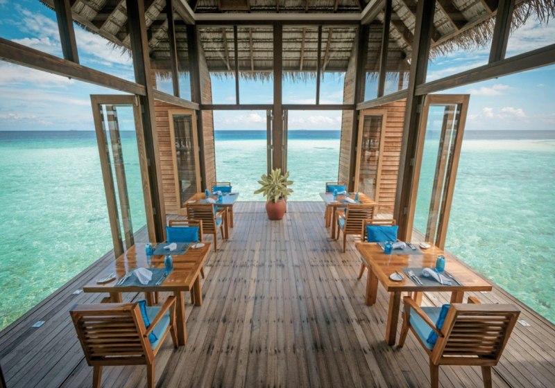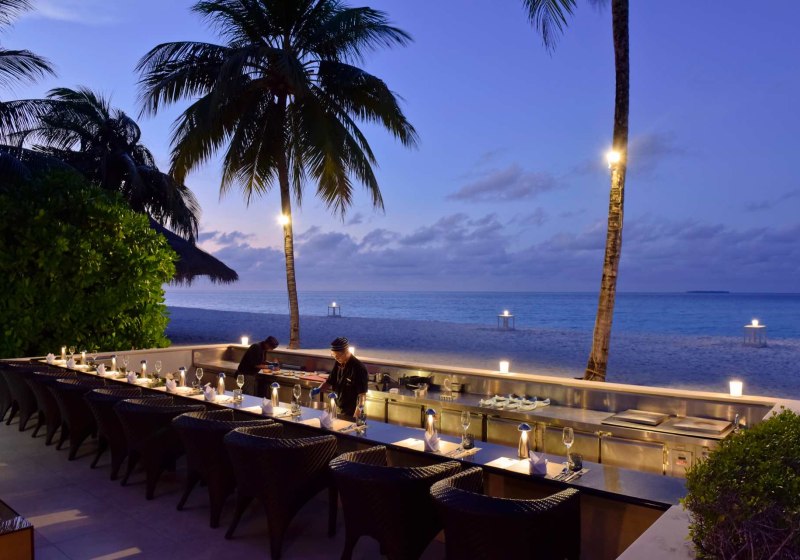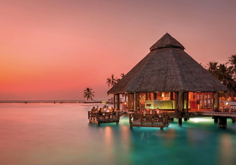 Zwölf Restaurants und Bars geben Eurem Tag Rhythmus und Kulisse: Das Open-Air-Restaurant Vilu serviert mediterrane Küche, das Ufaa by Jereme Leung interpretiert chinesische Spezialitäten. Das Ithaa Unterwasser-Restaurant setzt einen eigenständigen Höhepunkt – Essen mit Panorama auf die Unterwasserwelt.