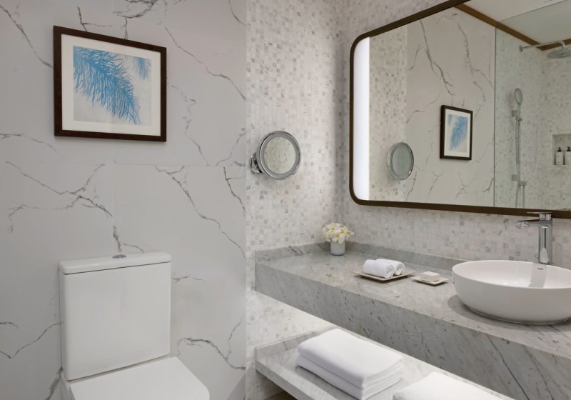 Ergänzend stehen Sauna, Dampfbad, Hamam, Whirlpool und ein Schönheitssalon bereit. Das Angebot reicht bis zu Ayurveda-basierten Anwendungen. Ruhige Bereiche und das Meer vor Augen schaffen eine Atmosphäre, die auf Reduktion und fokussierte Erholung setzt.