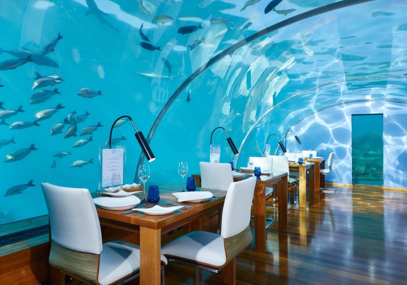 - Ithaa Dining: Unterwasser-Restaurant kombiniert Küche und Sicht auf Riffwelt.