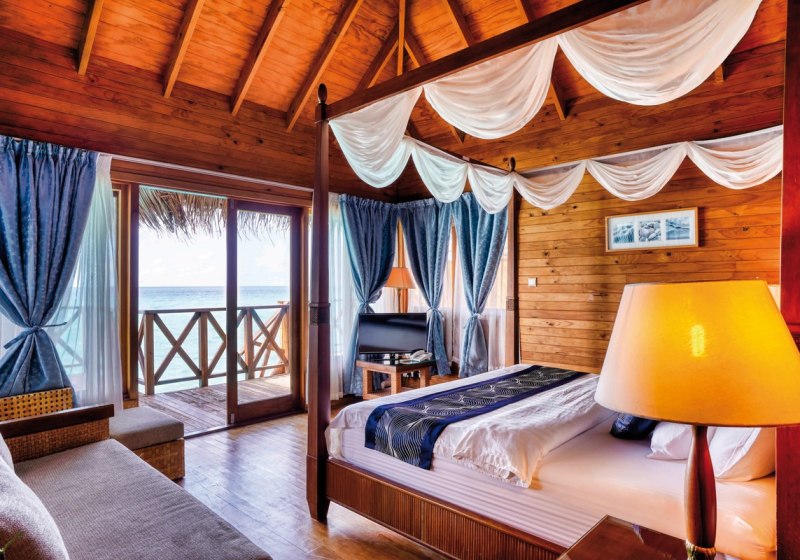 Die 150 Zimmer und Villen liegen in maximal zweigeschossigen Gebäuden. Ihr wählt zwischen Sky Deluxe, Garden Villa, Premium Beach Villa, Deluxe Beach und Water Villa. Gemeinsam ist ihnen Klimaanlage, WLAN, Mietsafe, Minibar gegen Gebühr, Föhn, Dusche/WC sowie Balkon oder Terrasse. Highlight: Water Villas bieten den direkten Zugang zur Lagune.