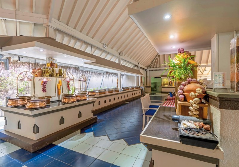 Im Hauptrestaurant erwartet Euch eine Buffetküche, die den Tag strukturiert: Frühstück, Mittag- und Abendessen mit abwechslungsreichen Stationen. Ergänzend stärkt Ihr Euch im Coffee Shop zwischendurch, während zwei Bars für Erfrischung, Sundowner und einen ruhigen Digestif bereitstehen.