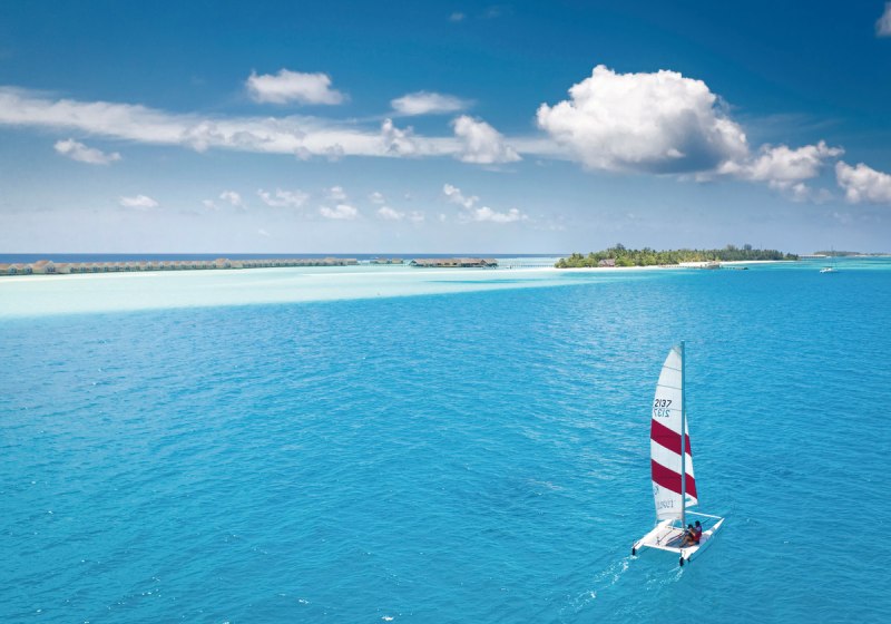 Sportlich ist die Auswahl breit: Ein 5-Sterne-PADI-Tauchcenter führt ins Revier des Ari-Atolls, Schnorcheln öffnet den Blick aufs Hausriff. Auf dem Wasser stehen Kajak, Kanu, Katamaran, Segeln, Windsurfen, Kitesurfen und Standflächen für weitere Aktivitäten bereit. Highlight: 5‑Sterne‑PADI‑Center verknüpft Kompetenz mit erstklassigem Revier.