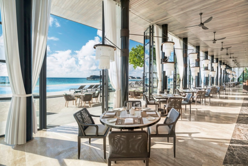 Mit insgesamt 5 Restaurants und einer Bar bietet das The St. Regis Maldives Vommuli Resort eine abwechslungsreiche Gastronomie an. Ob internationale Küche im 'Alba', asiatische Delikatessen im 'Orientale', arabische Köstlichkeiten im 'Cargo', oder zwanglose Internationale Gerichte im 'Crust & Craft' – es ist sicher für jeden Geschmack etwas dabei. Außerdem können Gäste den Tag in der 'The Whale Bar' ausklingen lassen.Ausstattung