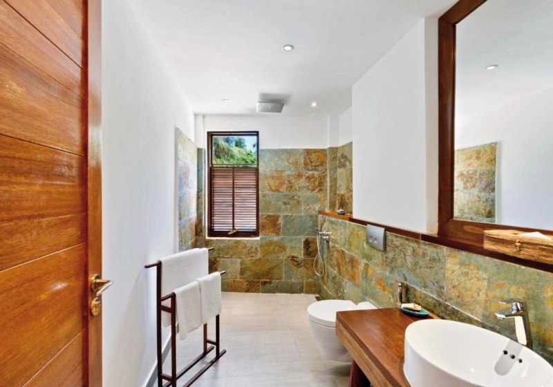 Alle Einheiten bieten Regendusche, WC, Föhn, Klimaanlage, Deckenventilator, Telefon, WLAN, Safe sowie Kaffee‑/Teezubereiter; die Minibar ist gebührenpflichtig. Zimmer messen etwa 44–50 m², die Heritage Villa rund 100 m² und verfügt über Indoor‑ und Outdoor‑Dusche. Highlight: Klare Grundrisse mit Terrasse oder Veranda für offene Wohnmomente.
