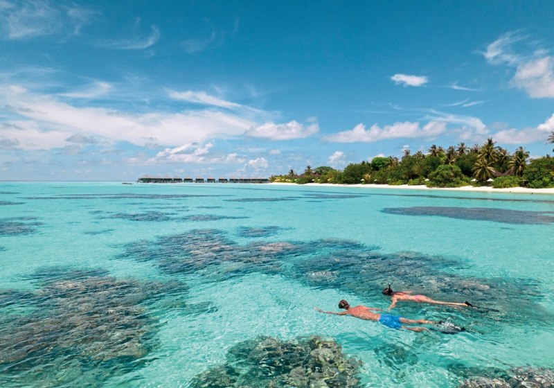 Ihr lebt in einer der 65 Villen, gestaltet aus natürlichen Materialien mit Holzterrasse und Liegen. Kulinarisch führt Euch das Buffetrestaurant Falhu durch abwechslungsreiche Themenabende, während Ihr im über dem Wasser gebauten Aqua à la carte diniert. WLAN nutzt Ihr in Euren Villen und in den meisten öffentlichen Bereichen ohne Aufpreis. Abends setzt dezente Unterhaltung sanfte Akzente – genau dosiert, um den Klang der Wellen nicht zu übertönen. Highlight: Zwei klare Restaurantwelten – Buffet im Falhu, Fine Dining im Aqua.