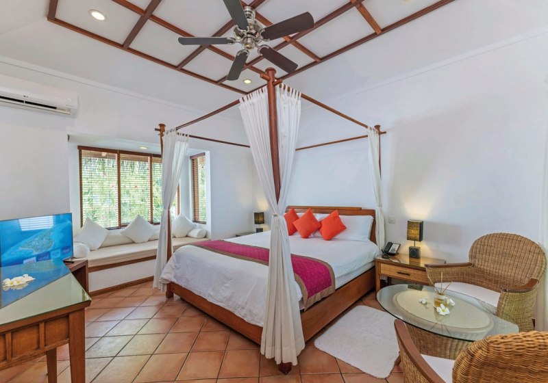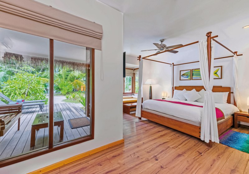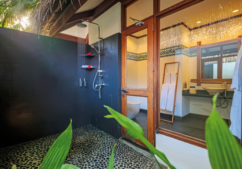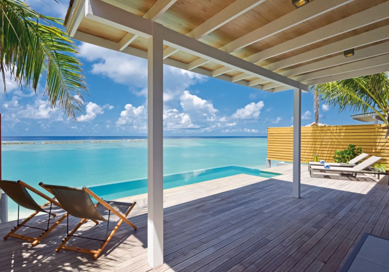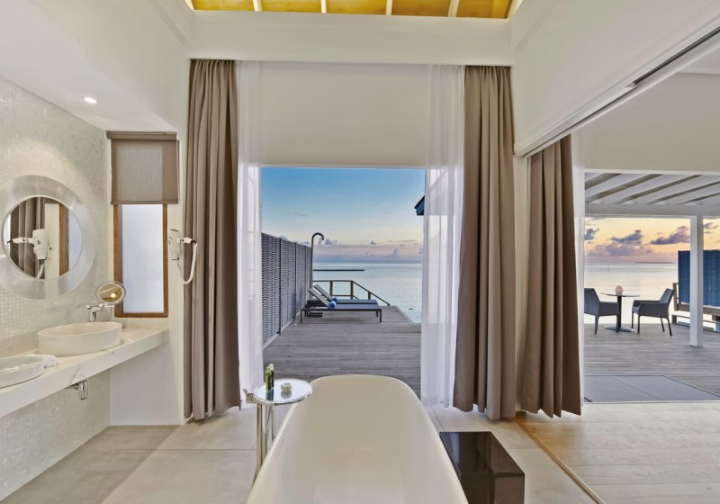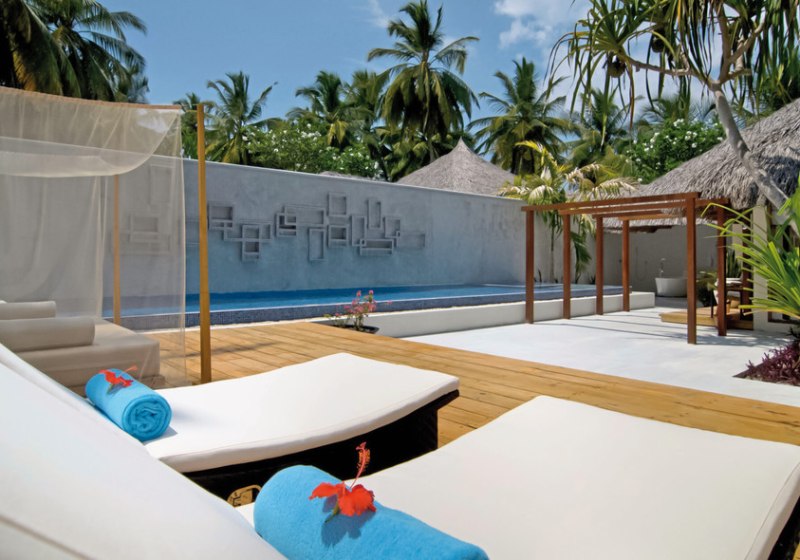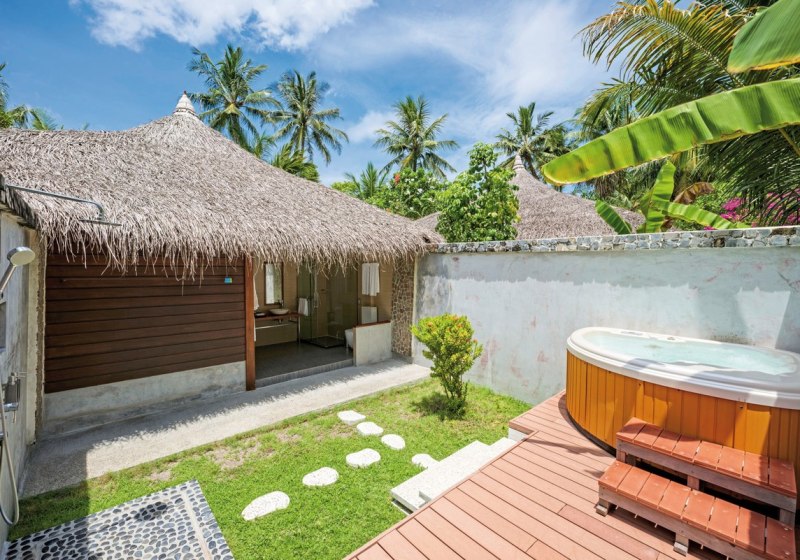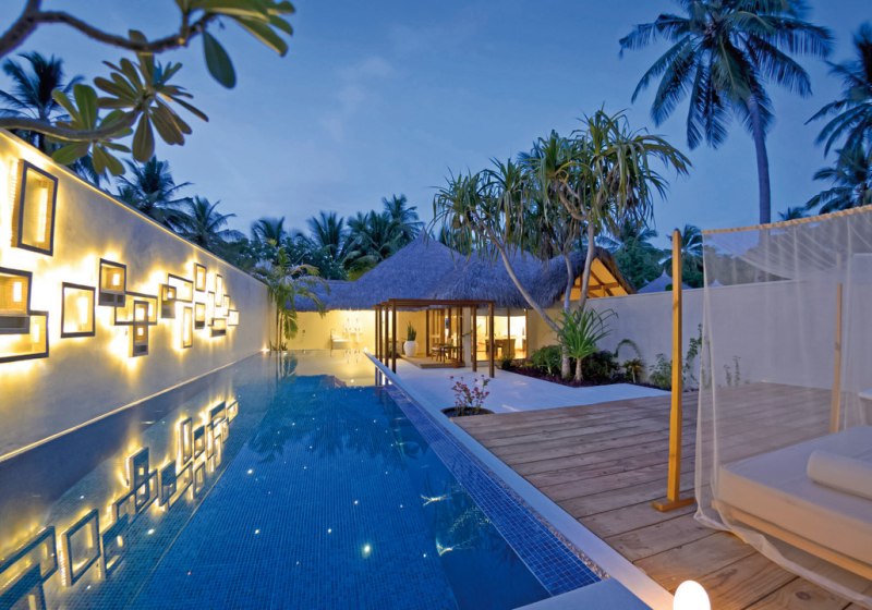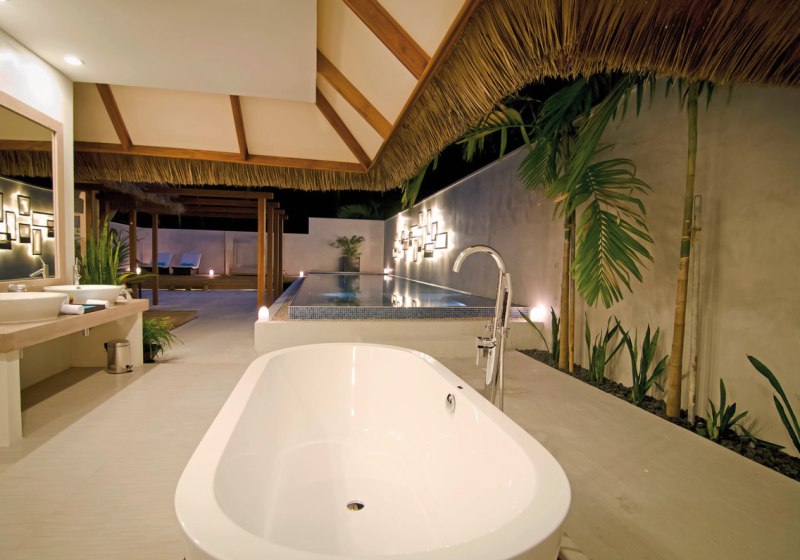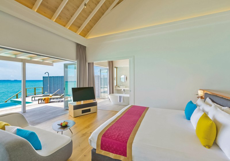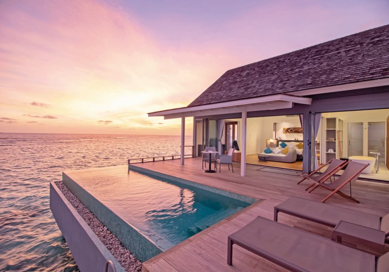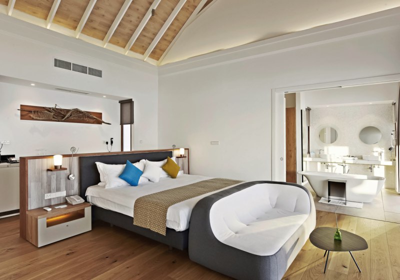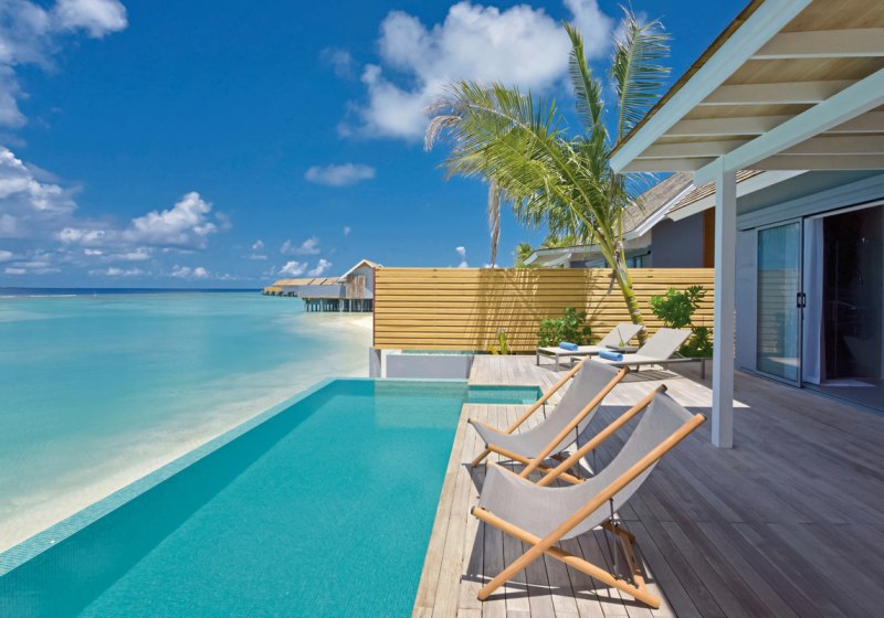 - Villenwahl: Strandvillen und Wasserbungalows in verschiedenen Zuschnitten.