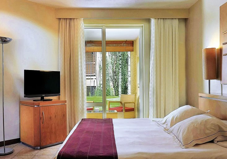 Ihr wohnt in Zimmern mit etwa 24 bis 28 Quadratmetern, jeweils mit Balkon oder Terrasse. Zur Ausstattung zählen Bad oder Dusche mit WC, Föhn und Pflegeartikeln. Sat-TV, Telefon, Safe, Schreibtisch sowie WLAN sorgen für Struktur zwischen Arbeitspunkten und Entspannung.