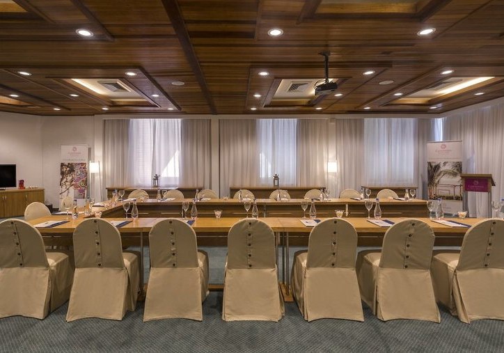 Die öffentlichen Bereiche wirken strukturiert und vielfältig: Lobby mit kostenfreiem WLAN, Boutiquen und Friseur, Poolbereich mit Liegen und Schirmen. Eine Poolbar, Gartenflächen und Terrassen schaffen Übergänge zwischen Aktivität und Ruhe. Für Meetings steht ein Konferenzraum bereit, für Events ein Bankettsaal.