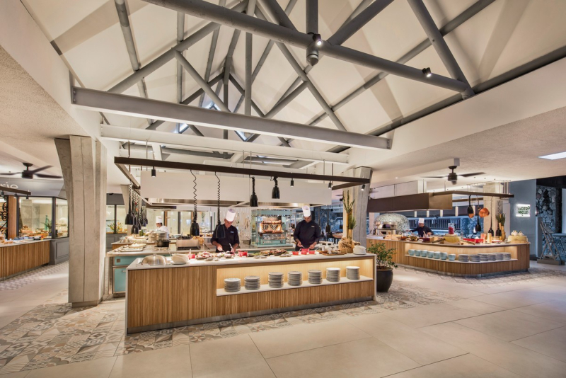 Auf dem Hotelgelände erwarten sieben hochklassige Restaurants mit internationalen Spezialitäten die Gäste. Von mediterraner Küche über Grillgerichte bis zu Sushi ist für jeden Geschmack etwas dabei. Regelmäßig finden Themenbuffets und Show-Koch-Events statt. Ihren Drink oder einen Cocktail genießen die Feriengäste in einer der 6 Bars mit Meer-, Pool- oder Gartenblick.Sport / Unterhaltung /Pool