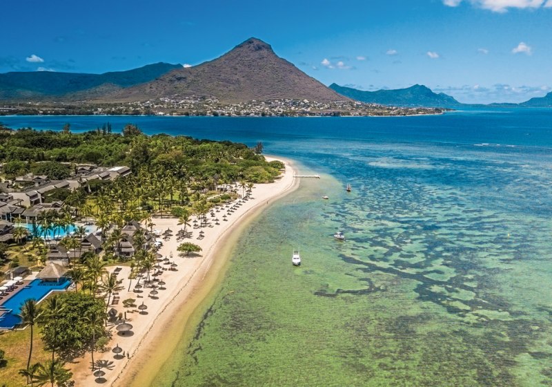 Das Resort liegt an der Westküste von Mauritius, direkt am Sandstrand und nahe Flic en Flac. Ihr erreicht Flic en Flac in etwa 5 Minuten, Port Louis in etwa 30 Minuten; der Transfer vom Flughafen dauert ungefähr eine Stunde. Das schafft kurze Wege zu Beachmomenten und gute Anbindung für Ausflüge. Highlight: Direkter Strandzugang mit komfortablen Distanzen zu Orten der Insel.