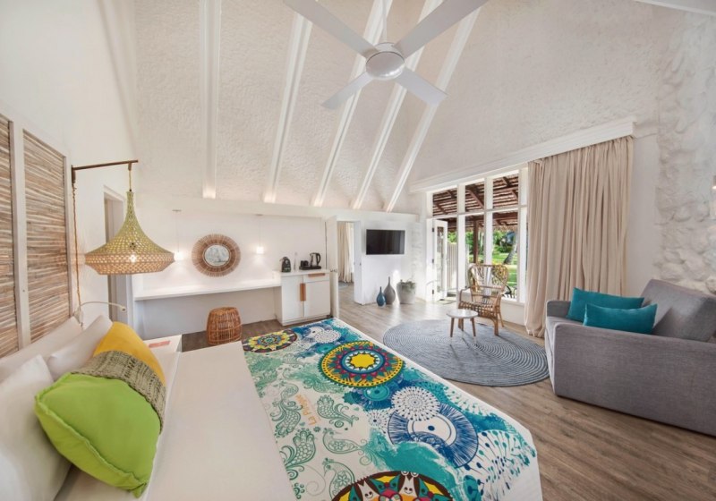 248 Zimmer verteilen sich auf durchdachte Kategorien. Die Garten Bungalows bieten rund 25 Quadratmeter mit Terrasse und klassischer Ausstattung inklusive Klimaanlage, Deckenventilator, Sat-TV, Safe, Minibar sowie Kaffee- und Teezubereiter. Premium Garden Zimmer kombinieren die Grundfläche mit Meerblick – ideal, wenn Ihr den Blick auf den Indischen Ozean im Alltag des Zimmers verankern möchtet.