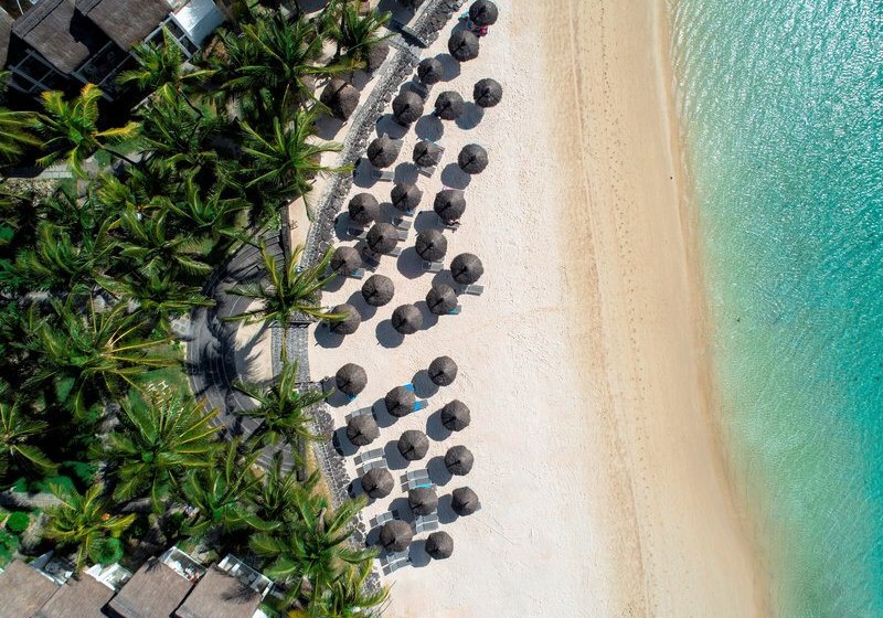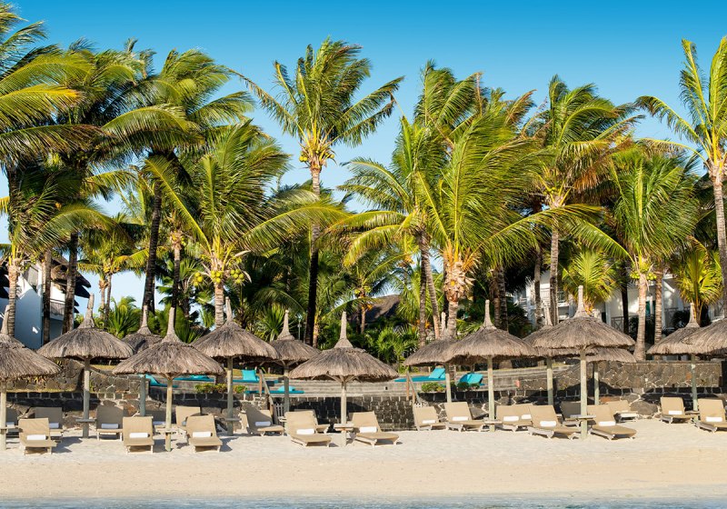 Ihr logiert direkt am Strand von Belle Mare an der Ostküste von Mauritius. Die Lage ist ruhig und bietet Euch unmittelbaren Zugang zum feinen Sand und zum Wasser – ohne Umwege. Port Louis liegt rund 43 Kilometer entfernt, der internationale Flughafen ist in etwa 60 Fahrminuten erreichbar. So bleibt der Tagesablauf entspannt: Strandspaziergang, kurze Wege zur Bar, Abendprogramm in Reichweite.
