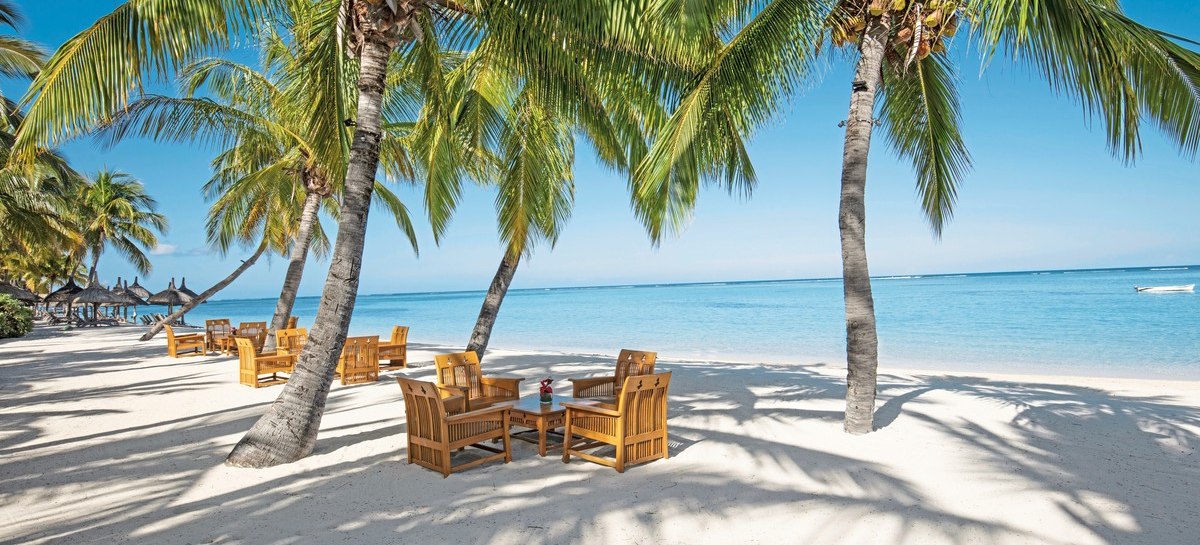 Der Südwesten der Halbinsel Le Morne prägt die Atmosphäre Eures Aufenthalts: Ihr lebt direkt am feinsandigen Strand, mit Blickachsen zur Lagune und kurzen Wegen zwischen Wasserlinie, Gärten und den zentralen Bereichen. Das Umfeld gibt Euch Struktur für ruhige Strandtage und sportliche Einheiten auf dem Wasser. La Gaulette liegt etwa 12 Kilometer entfernt – ideal für einen lokalen Abstecher. Port Louis erreicht Ihr nach rund 45 Kilometern, wenn Ihr Hauptstadtflair, Hafenstimmung oder eine größere Shopping-Runde einplanen wollt. Im Resort selbst bewegt Ihr Euch entspannt zwischen Poollandschaft, Restaurants und Bars; die Anbindung erweitert sich durch den kostenfreien Shuttle zum benachbarten Dinarobin, dessen Einrichtungen und Restaurants Ihr mitnutzt. So kombiniert Ihr eine direkte Strandlage mit zusätzlicher Auswahl ohne lange Transfers. Liegestühle und Sonnenschirme sind am Strand die schlichte, angenehme Konstante. Ob Ihr nur wenige Schritte bis zur Lagune gehen oder doch eine Tour über die Insel planen wollt – hier startet Ihr immer auf der Strandseite.