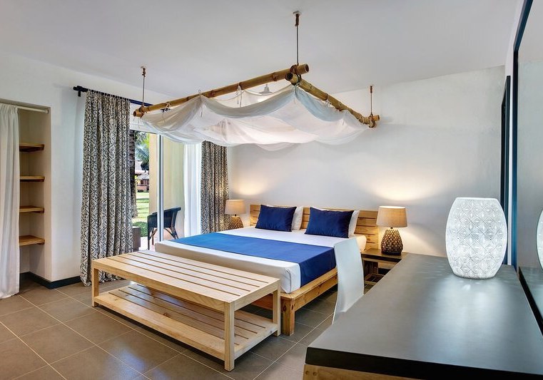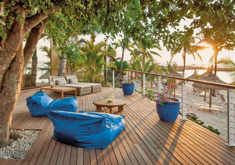 Im Veranda Pointe aux Biches wohnt Ihr in zweistöckigen Bungalows, eingebettet in einen tropischen Garten mit zwei Pools und eigenem Kinderbecken. Der Adults-Only Bereich Sandy Lane schafft ruhige Zonen, während Familien im Miniclub gut aufgehoben sind. Die Atmosphäre wirkt ungezwungen, gepflegt und nah am Wasser, mit Liegen und Sonnenschirmen an Pool und Strand.