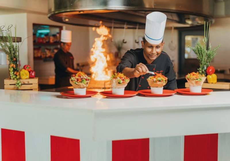 Kulinarisch wechselt Ihr im Tagesverlauf das Tempo: Im Buffetrestaurant „Show“ erwartet Euch Vielfalt mit unkomplizierter Auswahl. Direkt am Meer serviert das Strandrestaurant „Playa“ in entspannter Lage. Für den schnellen Hunger steht der Burger-Truck bereit. Mit B-Bar und einer weiteren Bar bleibt Ihr auch zwischen den Mahlzeiten gut versorgt.