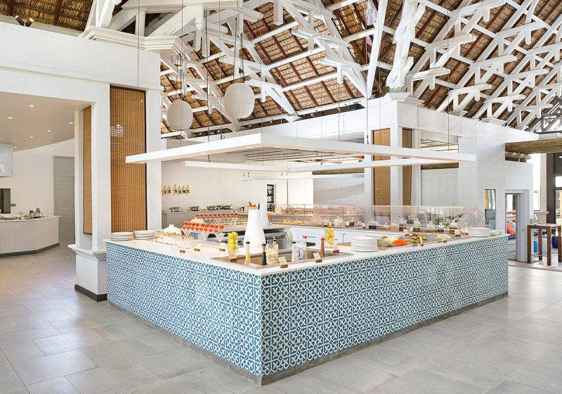 Im kulinarischen Mittelpunkt steht das Hauptrestaurant, flankiert von drei À-la-carte-Restaurants und dem Street-Food-Stand „Taba“. Vier Bars verteilen sich über die Anlage, ideal für Espresso am Morgen, Sundowner oder einen späten Drink nach Livemusik. Live-Kochen setzt Akzente in der Buffet-Inszenierung.