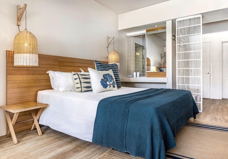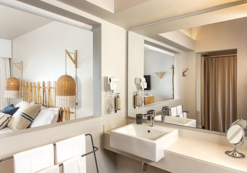 Die Ausrichtung variiert je nach Kategorie zwischen Garten-, Pool- oder Meerseite. In den Suiten wartet zusätzlich eine Outdoor-Badewanne – ideal für eine private Auszeit nach Strand oder Ausflügen. Das Setup ist klar und funktional, mit Größen, die auch längere Aufenthalte in den Ferien bequem machen.