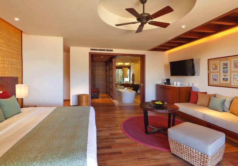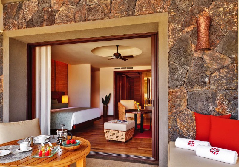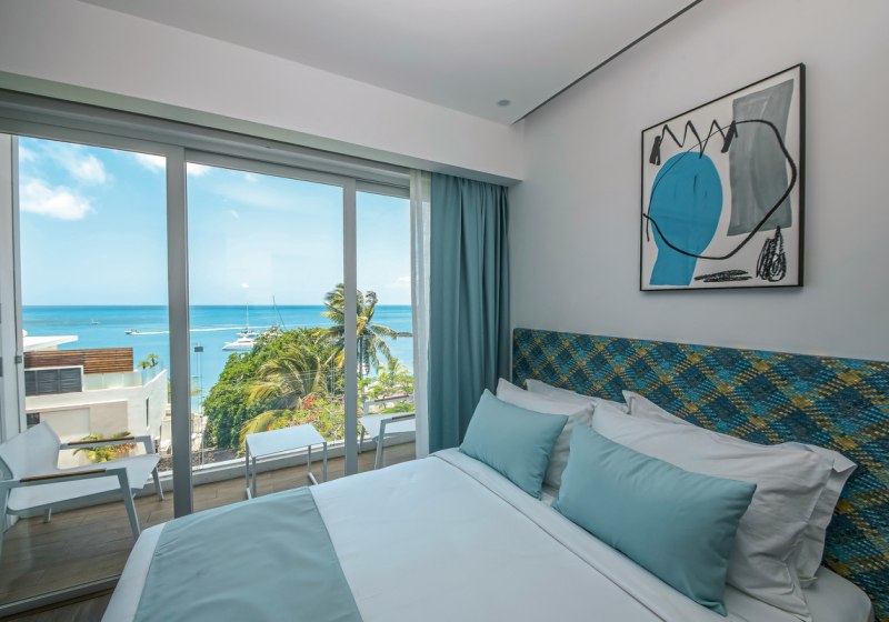 Im Ocean V Hotel begegnet Ihr einem adults-only Boutique-Hotel mit klarer Haltung: Ruhe, Stil und konzentrierte Aufmerksamkeit auf Euch ab 16 Jahren. Die Anlage ist kompakt, durchdacht geführt und liegt im Norden von Mauritius in einer Bucht. 38 Zimmer verteilen sich auf zwei Etagen, was kurze Wege und ein überschaubares Ambiente schafft. Ob Ihr den Tag auf der Dachterrasse beginnt oder den Abend in der Lounge ausklingen lasst – alles fühlt sich nah, angenehm und übersichtlich an. Highlight: Dachterrasse mit Infinity-Pool und Blick über die Bucht.