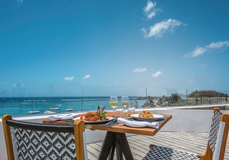 - Sonnenterrasse: Außenbereiche mit Schirmen, Liegen und Meerblick-Kulisse.