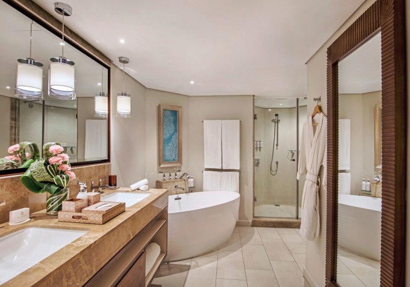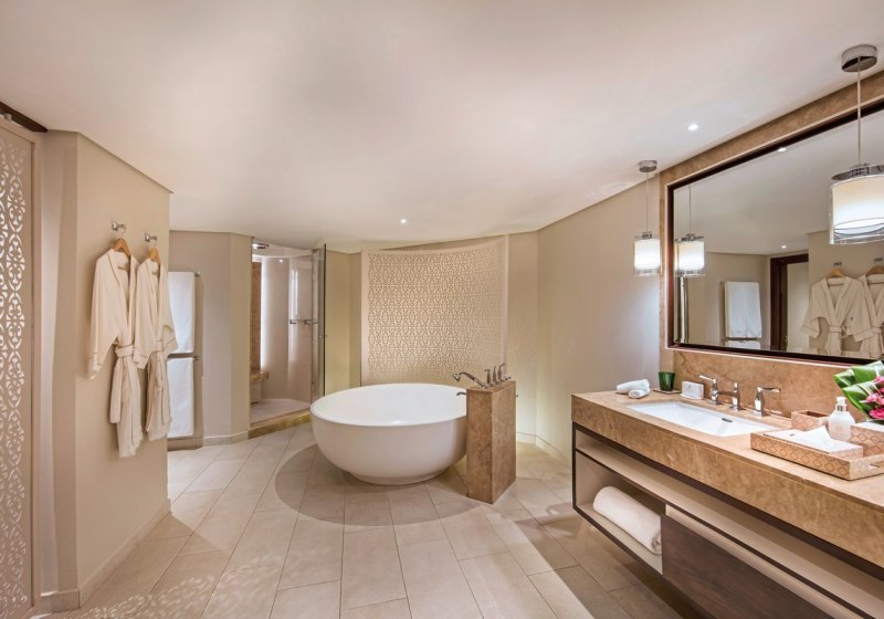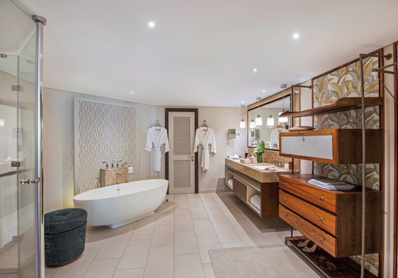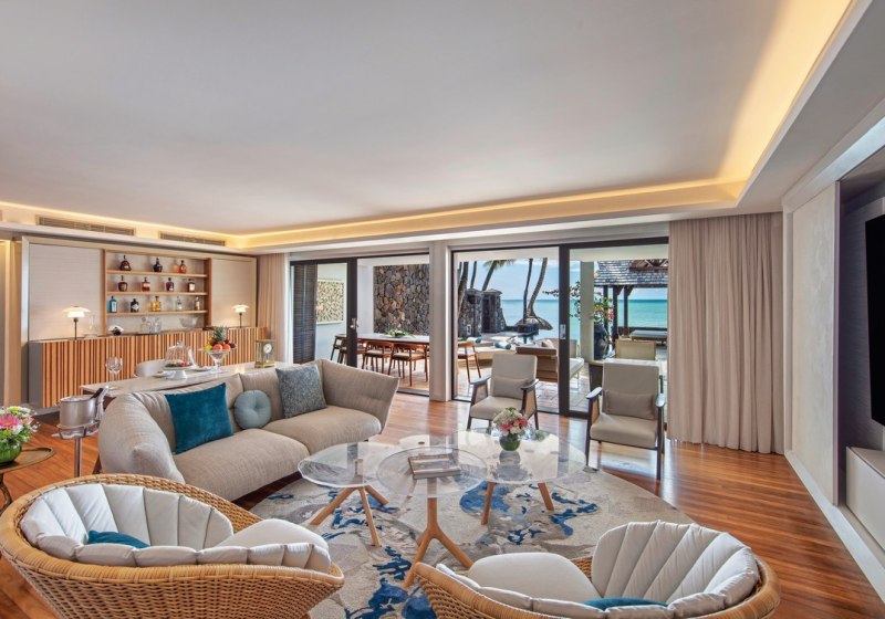Die Ocean Suite erweitert auf etwa 125 Quadratmeter mit separatem Wohnzimmer – ideal, wenn Ihr mehr Raum für Rückzug und längere Aufenthalte möchtet. Die Tropical Suite bietet rund 85 Quadratmeter im ersten Stock und eine Treppe direkt zum Strand, was den Weg ins Wasser besonders kurz macht. So findet Ihr passgenau die Balance aus Fläche, Funktion und Aussicht. Highlight: Alle Suiten mit Meerblick und präzise ausgestatteten Bädern.