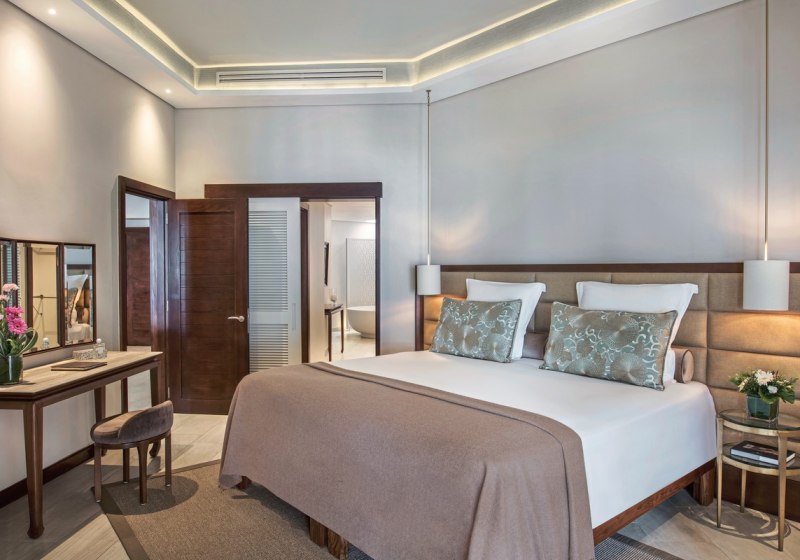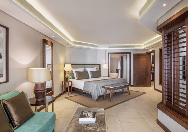 Im Royal Palm Beachcomber Luxury erlebt Ihr ein Haus, das Inselleben und dezente Eleganz zu einer klaren Handschrift verbindet. Die Suiten öffnen sich zum Ozean, die Wege führen direkt an den Sandstrand von Grand Baie. Drei beheizte Außenpools strukturieren die Anlage, ohne sie zu dominieren. Ihr spürt Ruhe mit Substanz: gepflegte Gärten, aufmerksamer Service, klare Linien. Familien finden mit Kids Club und Babysitterservice verlässliche Strukturen; Paare schätzen Privatsphäre, Meerblick und viel Raum.