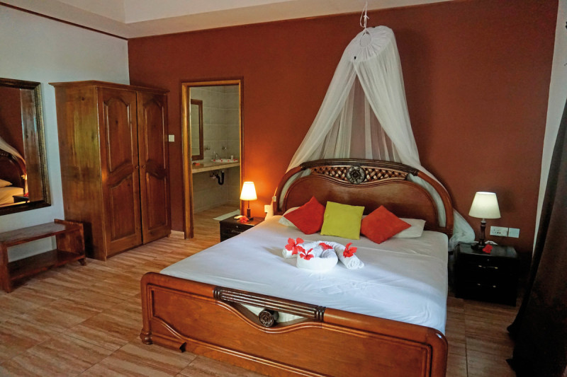 Die Ausrichtung zum Grün verleiht Eurem Tagesrhythmus Ruhe. Fliesenboden unterstützt die angenehme Kühle, die Terrasse wird zum Lieblingsplatz zwischen Strandgängen. Familien greifen auf Babybetten auf Anfrage zurück. So entsteht ein Zimmerprofil, das Einfachheit mit den richtigen Funktionen verbindet und Euch auf La Digue genau den Raum gibt, den Ihr in den Ferien schätzt.