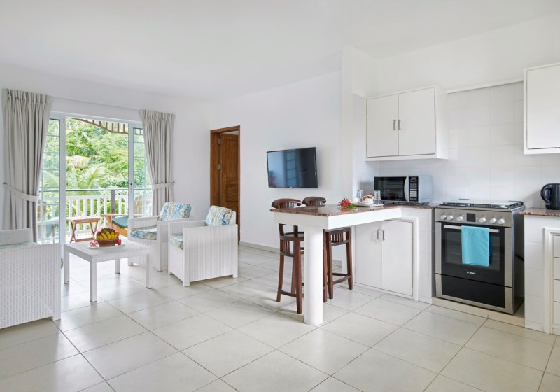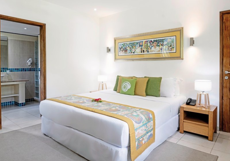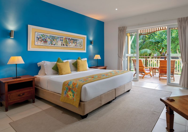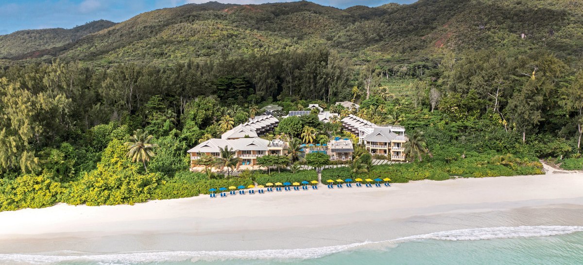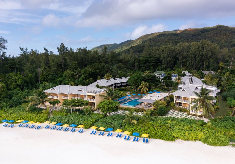 Herzstück ist der Infinity-Swimmingpool mit separatem Kinderbecken und Blick auf den Curieuse Marine Nationalpark. WLAN nutzt Ihr kostenfrei, ein Fitnessraum steht bereit. Die Anlage verteilt sich auf zehn zweistöckige Gebäude und bietet damit kurze Wege zwischen Strand, Restaurants, Bars und Euren Zimmern.