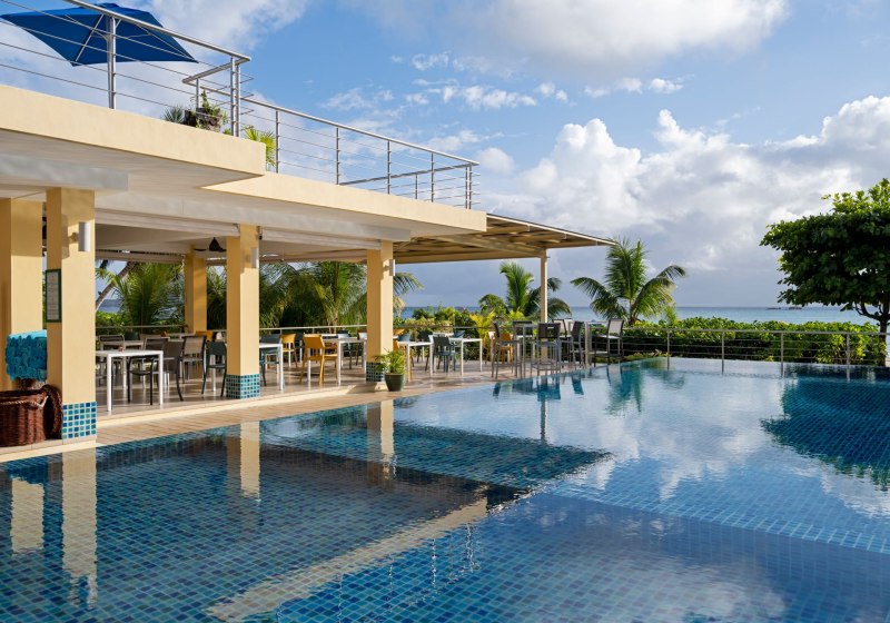 - Infinity-Pool: Schwimmen mit freiem Blick zum Curieuse Marine Nationalpark.