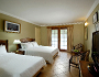 Das zweigeschossige Hotelgebäude verfügt über insgesamt 232 Zimmer und Suiten. Sowohl die großzügigen Standard-Doppelzimmer als auch die geräumigen Familien-Standardzimmer verfügen über eine gemütliche Sitzecke und sind mit zentral gesteuerter Klimaanlage, Kaffee- und Teezubereiter sowie Minibar ausgestattet. Ein Sat-TV sowie Telefon und kostenloses W-LAN ergänzen den Komfort. Die Delux Chalets und Deluxe Familienchalets bieten zudem einen eigenen Balkon oder eine Terrasse.Gastronomie / Restaurants