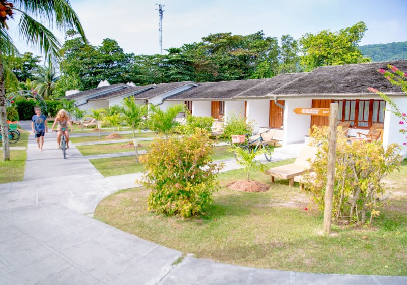 Die Anlage verbindet Rückzugsorte mit geselligen Zonen wie Gemeinschaftslounge und Bars. Der Pool mit integriertem Kinderbecken sorgt für unbeschwerte Wasserzeit, während Ihr am Strand das sanfte Tropenlicht genießt. Wer tiefer eintauchen will, plant Tauchgänge über die PADI Tauchschule ein oder bleibt beim entspannten Rhythmus unter Palmen.