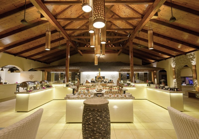 Im Buffetrestaurant „Hibiscus“ erwartet Euch internationale Küche mit kreolischen Akzenten. Die Auswahl ist abwechslungsreich und wird in den Bewertungen als hochwertig beschrieben. Wer gezielter wählen möchte, reserviert in der „Mango Terrace“ und genießt À-la-carte mit Meerblick-Feeling als Kulisse für den Abend.