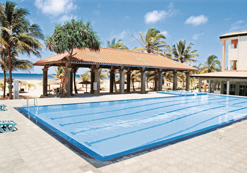 Direkt am Sandstrand von Negombo erlebt Ihr im Goldi Sands ein entspanntes Strandhotel mit klarer Struktur. Zwei Pools und ein Whirlpool bilden das Herz der Anlage, dazu liegen breite Sonnenbereiche am Wasser. WLAN im gesamten Hotel, eine Lobby mit Rezeption und kurze Wege schaffen unkomplizierte Tage am Meer.