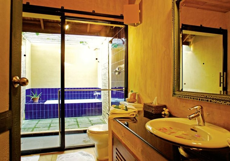 - Draußen baden: Außenbadewanne in den Pavillons für entspannte Rituale.