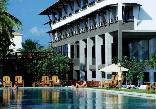 Direkt am Sandstrand von Negombo empfängt Euch Jetwing Beach mit klarer Linienführung und der Handschrift von Geoffrey Bawa. Die Kombination aus weitläufiger Gartenanlage, zwei Süßwasserpools und luftigen Terrassen schafft Raum für entspannte Strandtage und aktive Stunden. Mit nur 78 Wohneinheiten wirkt das Haus überschaubar, Wege bleiben kurz, der Service präsent.