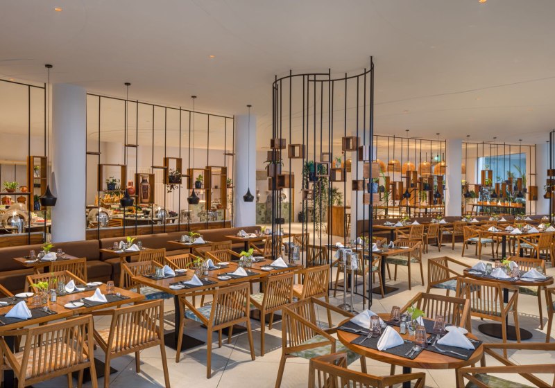 Im Hauptrestaurant „Garden of Eden“ esst Ihr vielseitig, mit Optionen von Frühstück bis Abendessen. Dazu kommen All-Inclusive, Halbpension oder Vollpension sowie Snacks und alkoholfreie und alkoholische Getränke. Vegetarische Kost, glutenfreie Mahlzeiten, Diätgerichte und Kindermenüs sind vorgesehen.