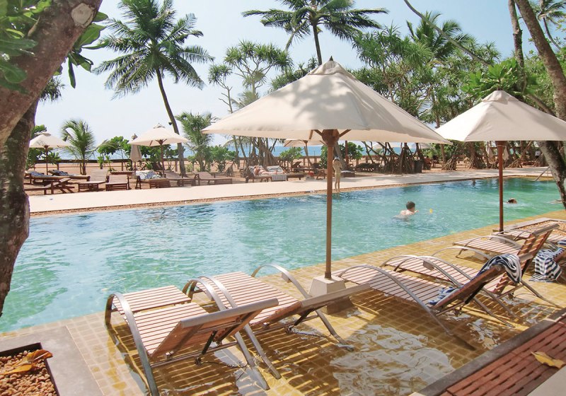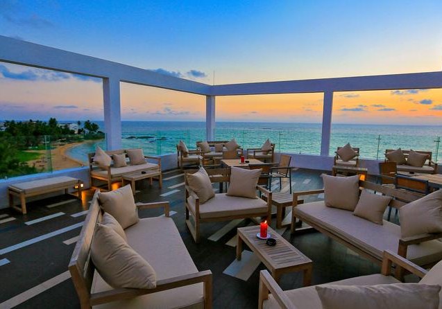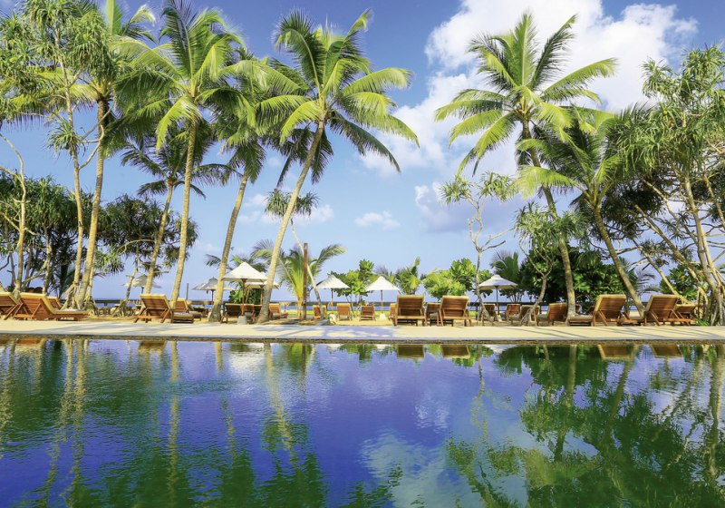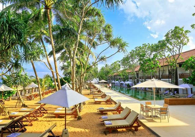 Ihr residiert direkt am Sandstrand von Induruwa, der sich rund drei Kilometer erstreckt und sanft ins Meer abfällt. Bis Bentota sind es etwa drei Kilometer – ideal, wenn Ihr die Umgebung ergänzend erkunden möchtet. Der internationale Flughafen Bandaranaike liegt rund 115 Kilometer entfernt. Die Stimmung ist strandnah und geradlinig: Wege führen von der Anlage ohne Umwege an die Brandung, während die Dachterrasse weite Horizonte öffnet.
