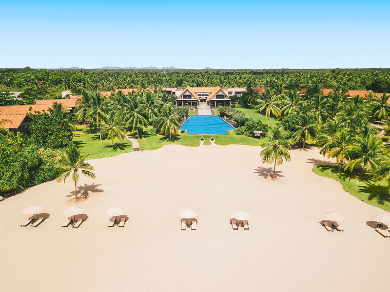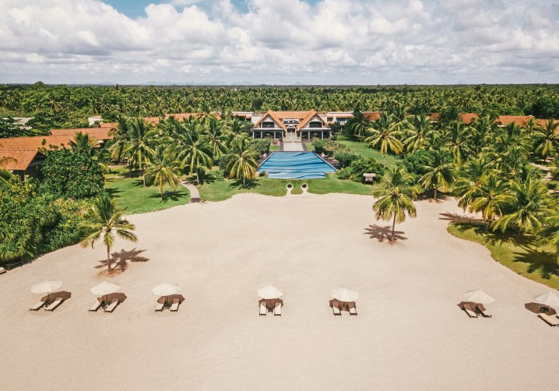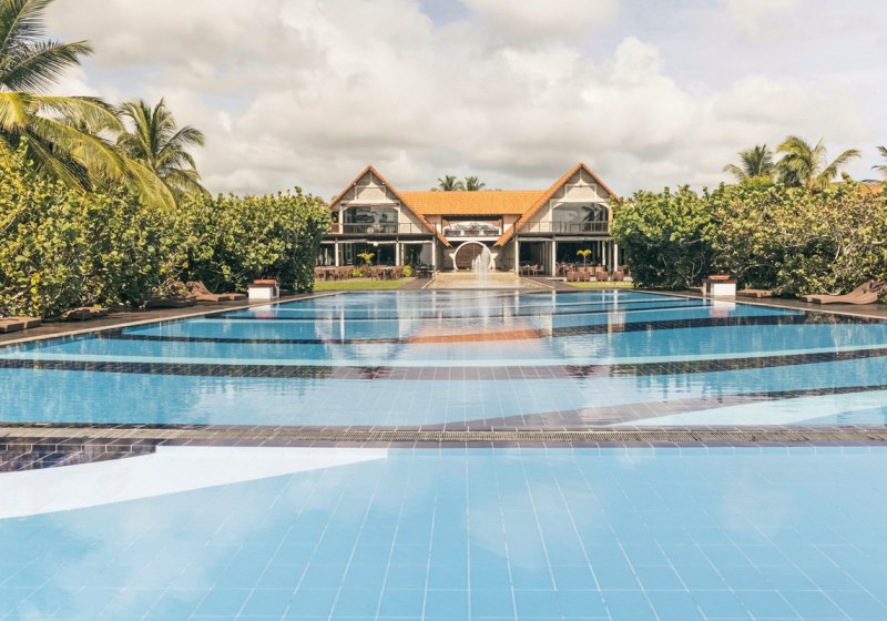 Uga Bay empfängt Euch an der Ostküste Sri Lankas direkt an der Bucht von Passikudah. Das Resort wirkt überschaubar und persönlich: 48 Zimmer und Suiten verteilen sich auf mehrere doppelstöckige Gebäude, eingebettet in eine gepflegte Gartenanlage. Der lange Sandstrand liegt unmittelbar vor Euch, der Blick öffnet sich auf ruhiges, flaches Wasser. Die Atmosphäre ist entspannt, mit klaren Linien, viel Licht und kurzen Wegen zwischen Strand, Pool und den offenen Lounge-Bereichen.