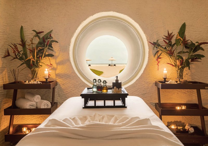 - Spa: Behandlungsräume unter dem Pool mit Blickfenstern zum Meer.